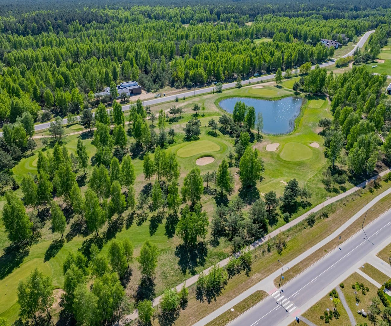 Концепция застройки предусматривает максимально деликатную интеграцию комплекса в природную среду с сохранением существующего ландшафта. Комплекс соседствует с живописным сосновым массивом и гольф-полями чемпионского уровня.
