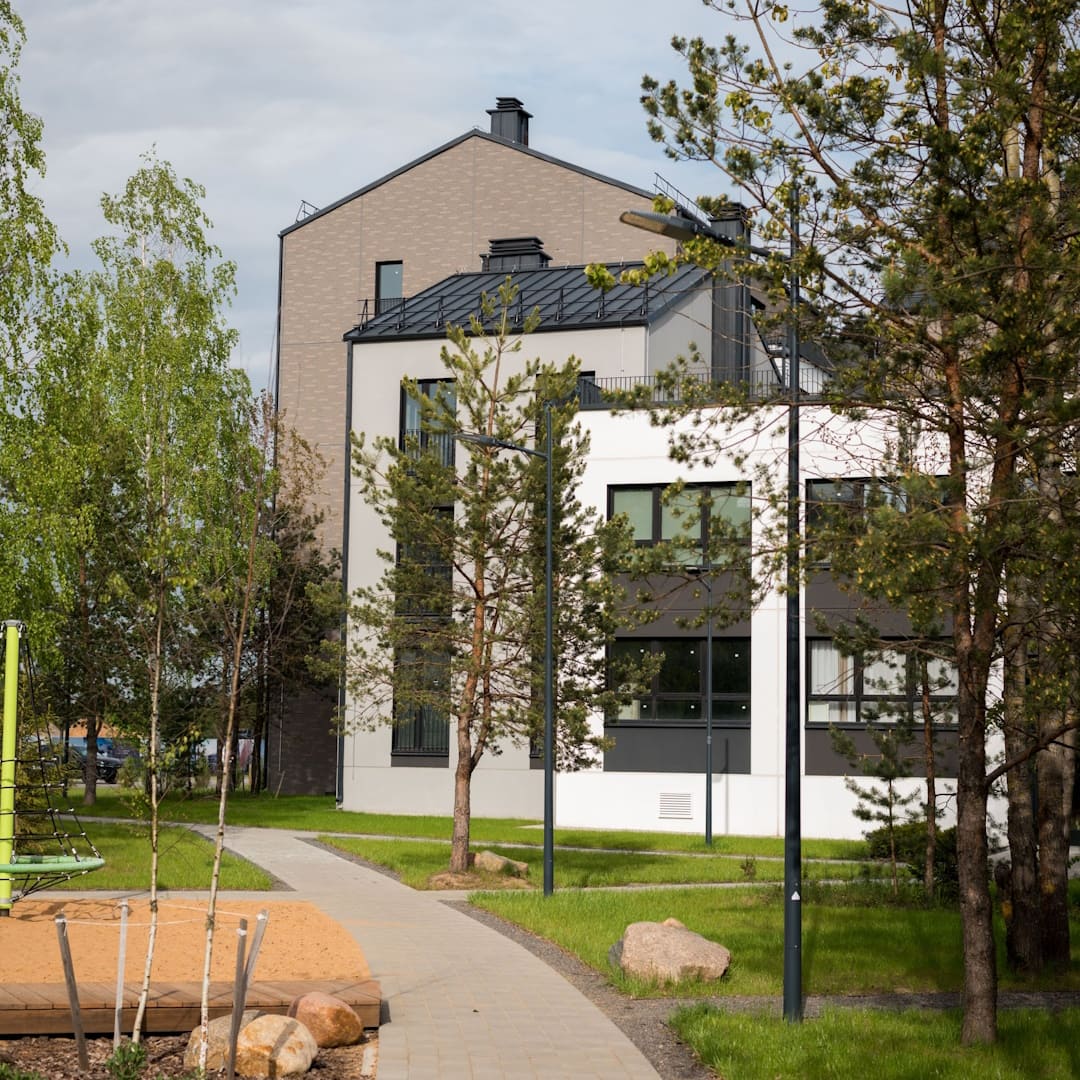 Низкоэтажные дома до 9 этажей. Квартиры от 1 до 5 комнат площадью от 25 до 120 м². Собственные открытые террасы на первом этаже, а также на кровле, мансардные. Закрытые дворы без автомобилей.