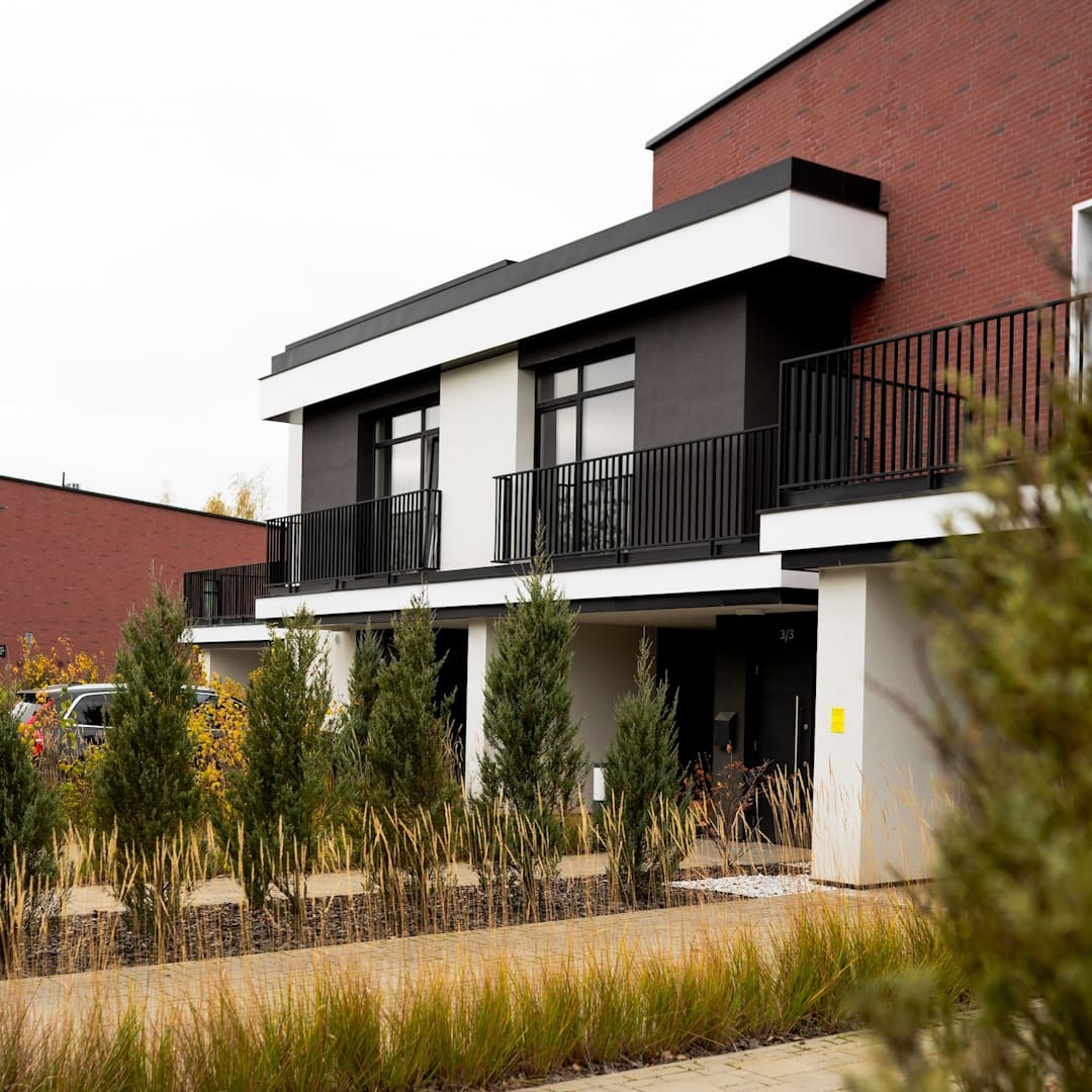 Монолитные дома, состоящие из нескольких двухэтажных частных квартир, объединенных в одну линию. Каждый дом имеет отдельный вход, парковочное место, персональный участок.